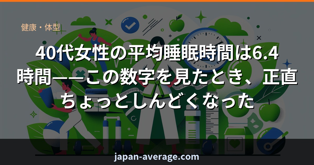 それと、更年期の影響がじわじわ出始める年代でもある。ホットフラッシュや寝汗、動悸みたいな症状が出ると、眠れても途中で目が覚める。睡眠時間の数字に「質」は反映されない。だから6.4時間という平均は、実際の疲弊度より過小評価されてる可能性が高い。