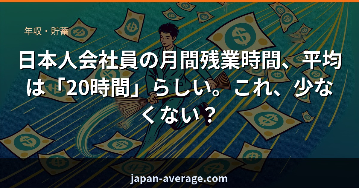 厚生労働省の毎月勤労統計調査(2024年)によると、一般労働者の月間平均残業時間は約20時間。1日あたりに換算するとおよそ57分、つまりほぼ1時間ちょっとだ。